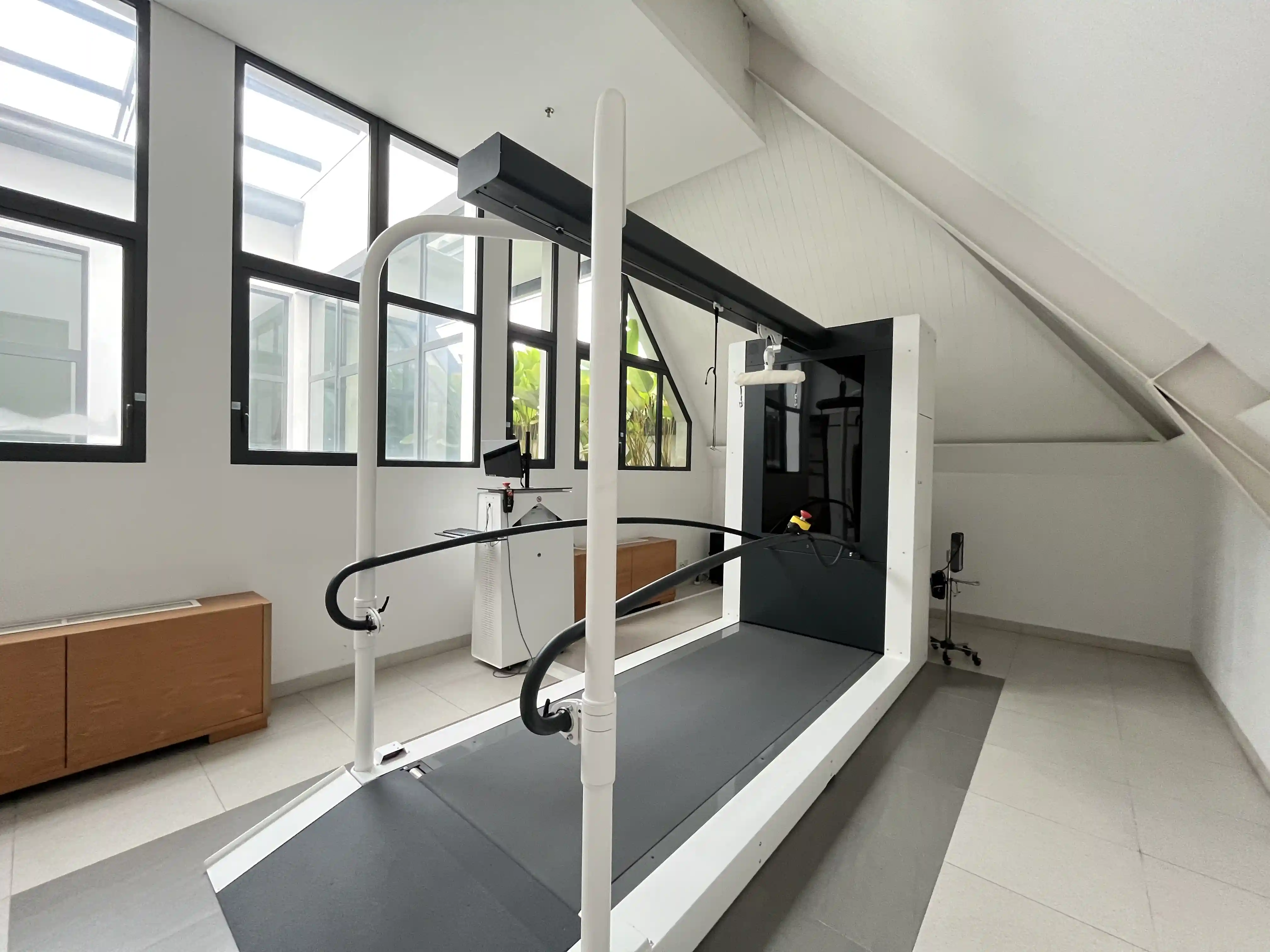 Andago® memungkinkan pasien untuk tidak hanya berjalan lurus, tetapi juga berlatih berbelok dan menavigasi hambatan saat berjalan. Ini adalah simulasi sempurna untuk mempersiapkan diri sebelum Anda kembali berjalan secara mandiri.